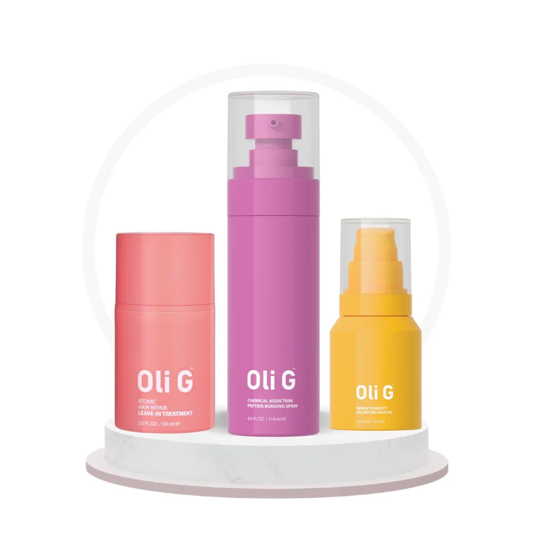 OLI G TRIO SET – Leave-In + UV & Color Booster + Renew Porosity Olie